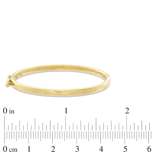 This child's heart bangle is fashioned in 10K gold and measures 5.0 inches in circumference.