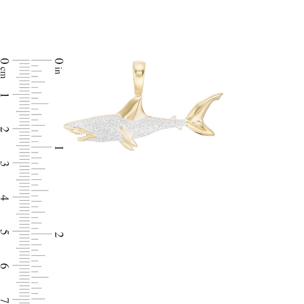 This men's 1/3 ct. t.w. diamond shark necklace charm is set in 10K gold. Add this charm to your favorite chain (sold separately).