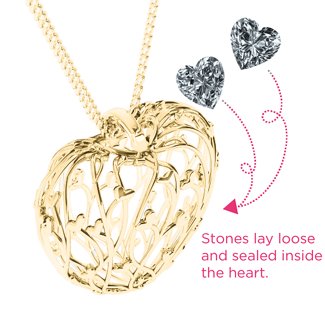 10K Yellow Gold Organic Caged Hearts Pendant with 2 Cubic Zirconia Stones