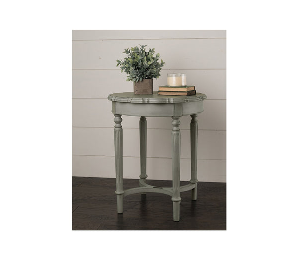 Styled after an antique store find, our French Inspired Tall Pie Crust Table is 28" high and has a charming pie crust top shape with?classical style fluted legs and an inviting worn-in character with its vintage Dove Grey paint finish. Available in three colors, Dove Grey, Antique White and French Blue. Read less