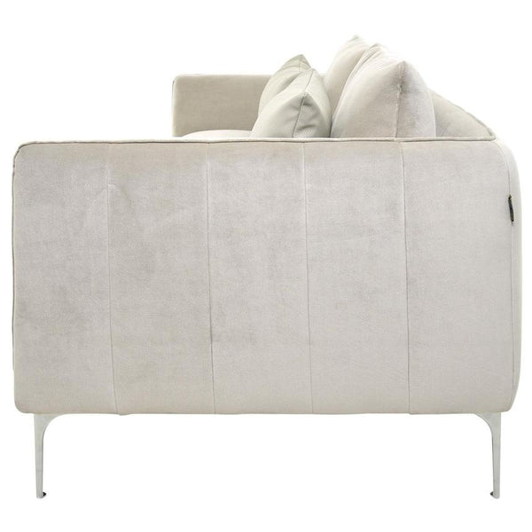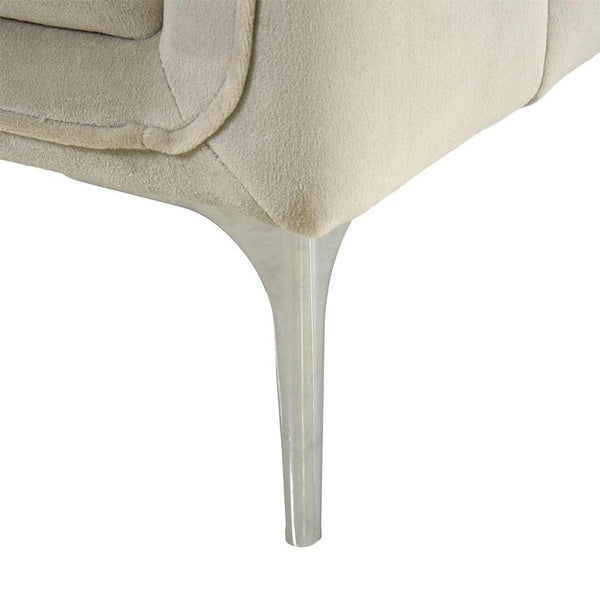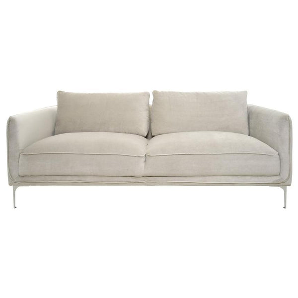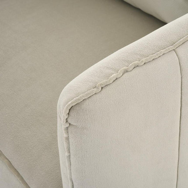 If you’re looking for a new couch for your living room, the Rylan Sofa is a great choice. Upholstered in polyester with a soft feel to the touch and loose back cushions, you’ll sit back comfortably on this modern sofa right away. Plus, the tapered legs, cream fabric, and tufted stitching details show off the clean modern look of this sofa so it can perfectly match your décor.