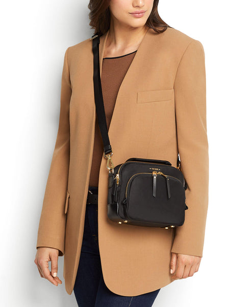 Great for jetsetters and commuters alike, this cute little travel case is perfectly sized for your essentials. Featuring several interior and exterior pockets and an adjustable, removable strap. Purposeful, practical design that doesn’t compromise on style: Our Voyageur collection brings you versatile and lightweight nylon backpacks, bags, and accessories for women