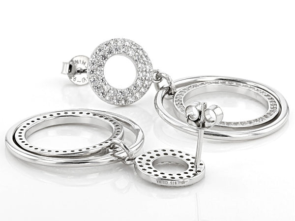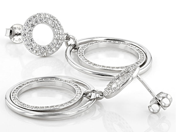 Bella Luce ® white diamond simulant 1.66ctw round, rhodium over sterling silver earrings. Measure approximately 1.38"L x 0.88"W and have pushback backings. The diamond equivalent weight is 0.92ctw.