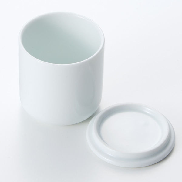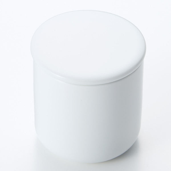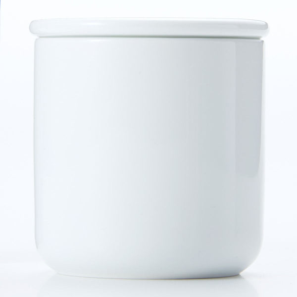 A convenience storage container made from white porcelain. Can be used as dishware to serve food or small storage container.